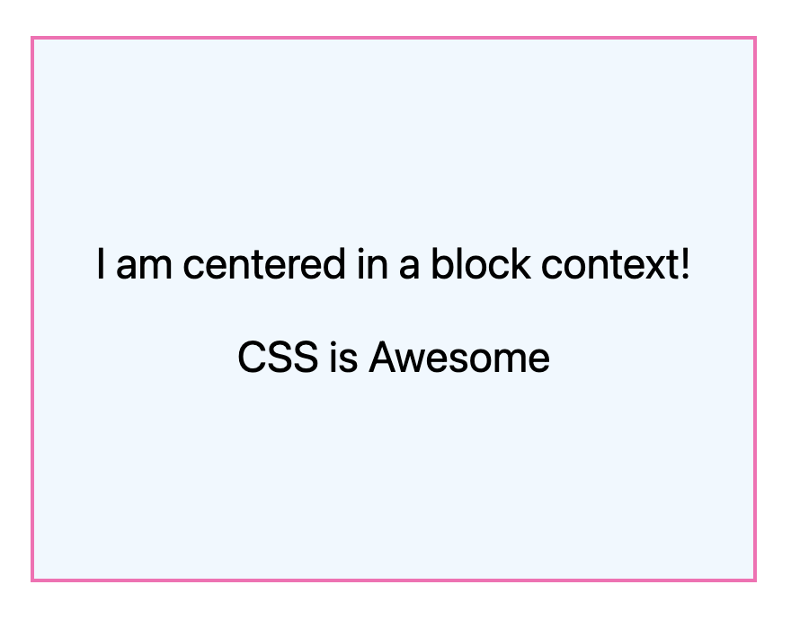 การเปลี่ยนแปลงที่ยอดเยี่ยมอีกอย่างคือความสามารถในการใช้กลไกการจัดกึ่งกลาง เช่น align-content ในเลย์เอาต์บล็อก ซึ่งหมายความว่าตอนนี้คุณสามารถทำสิ่งต่างๆ เช่น การจัดกึ่งกลางแนวตั้งภายใน div ได้โดยไม่ต้องใช้เลย์เอาต์แบบยืดหยุ่นหรือกริด และไม่มีผลข้างเคียง เช่น การป้องกันการยุบขอบ ซึ่งคุณอาจไม่ต้องการจากอัลกอริทึมเลย์เอาต์เหล่านั้น