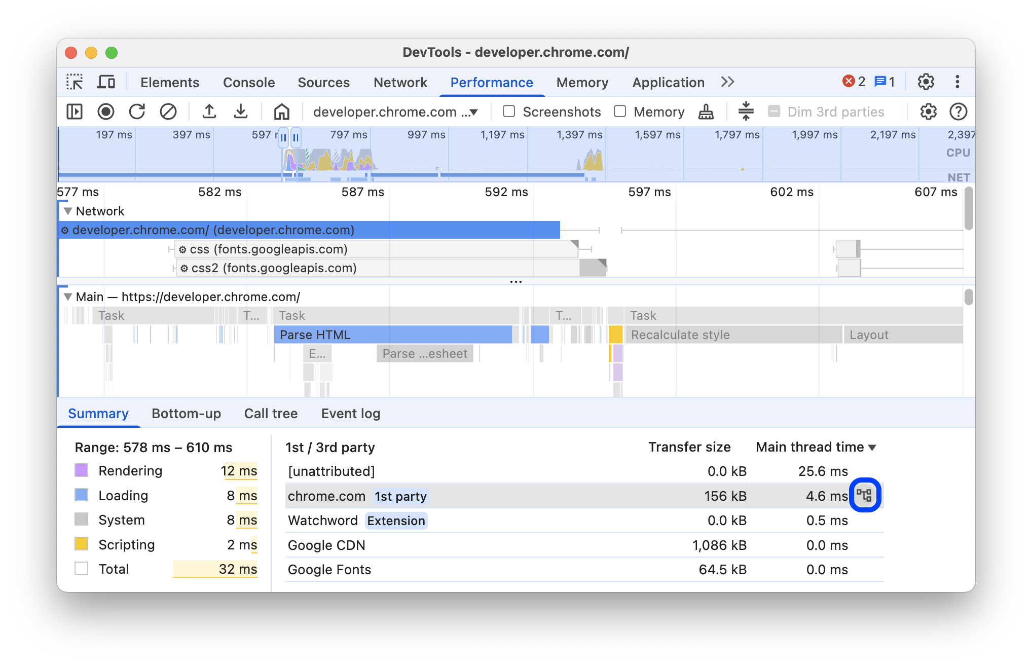 Để biết thêm thông tin chi tiết, hãy xem cách Phân tích hiệu suất của bộ chọn CSS trong sự kiện Recalculate Style.